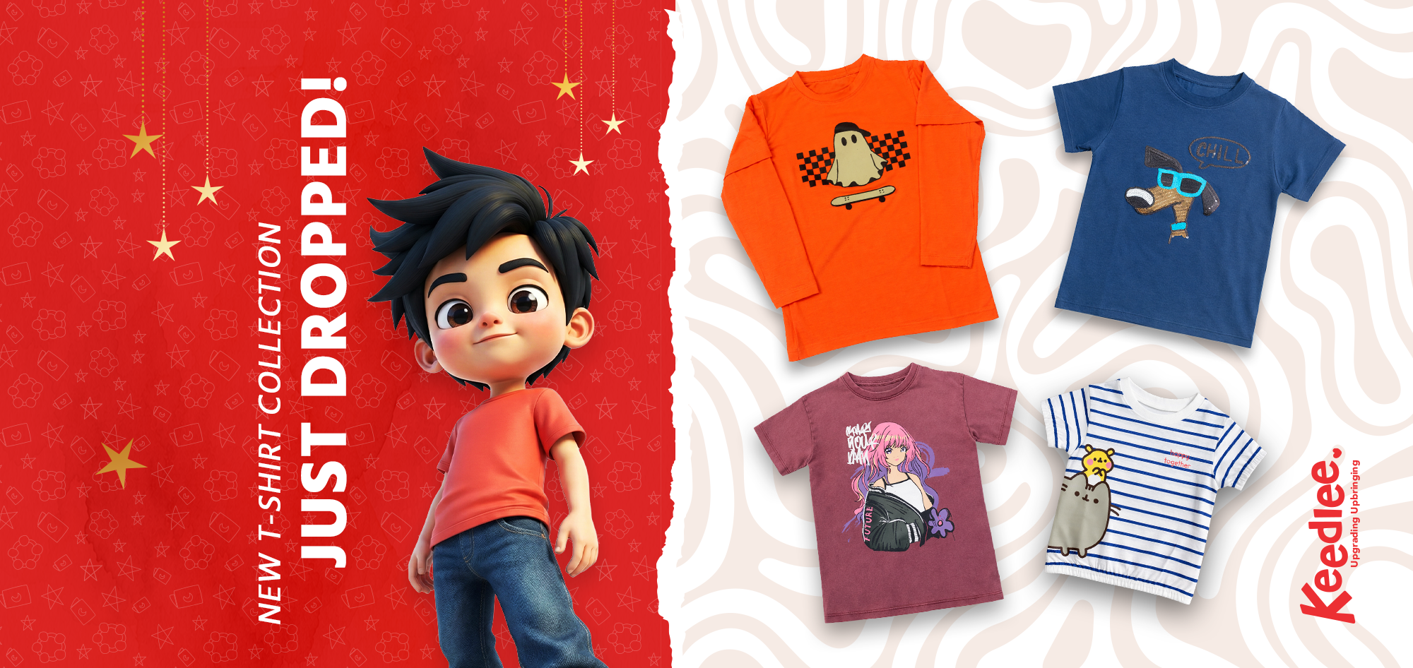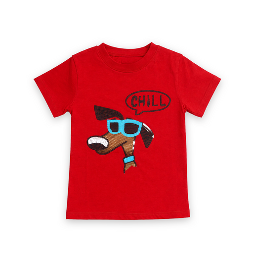 View full detailsSTYLE NAME:Chill Tee COLOR:Red Color,Blue Color. AGE:2/4/6 Years. DESCRIPTION:Boys Tee,Sequence Print. FABRIC: 95% Cotton & 5% Spandax, 160 GSM.