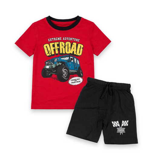 STYLE NAME:Extreme Adventure Offroad Tee COLOR:Tee: RED,SKY,GREEN. Pent: Black. AGE:2/4/6/8 Years. FABRIC: 100% Cottom 160 GSM